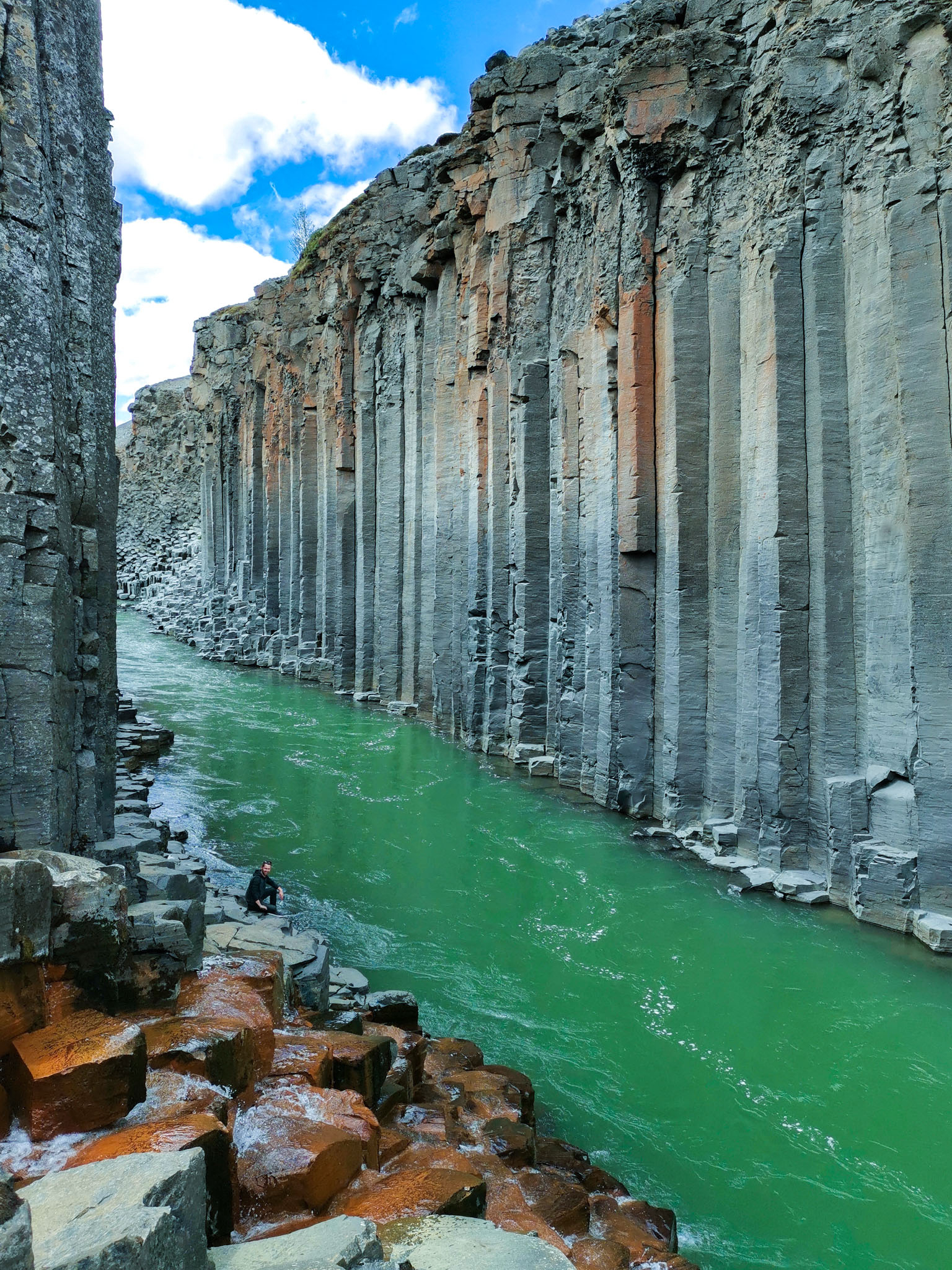 For long time this canyon wasn´t popular place to visit beacuse of really strong river current Jökulsá á Dal. The situation has changed when the hydroelectric plant was built on that river. The water level has changed, the power of the river decreased, not carrying anymore mud and sand. The river became clear and green coloured.
