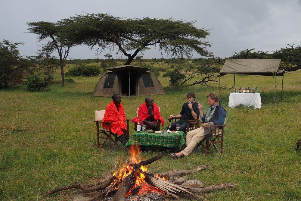 Tourists experiencing Maasais Culture and Bonfire